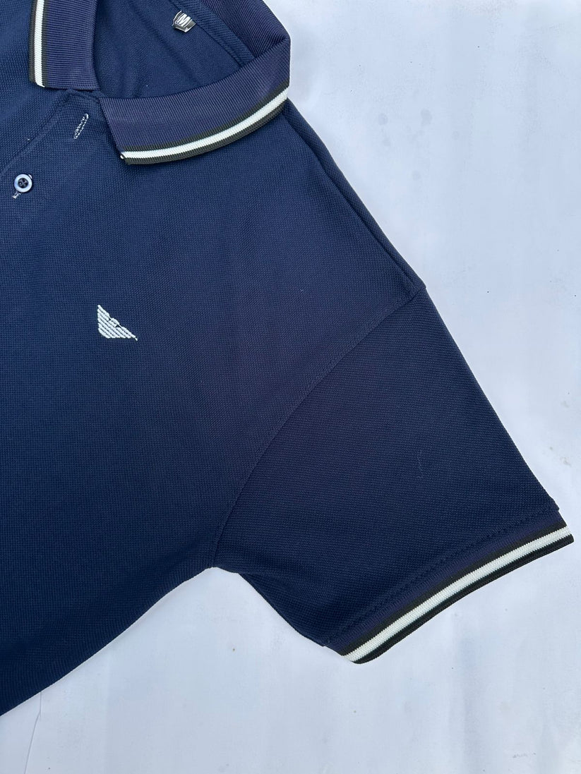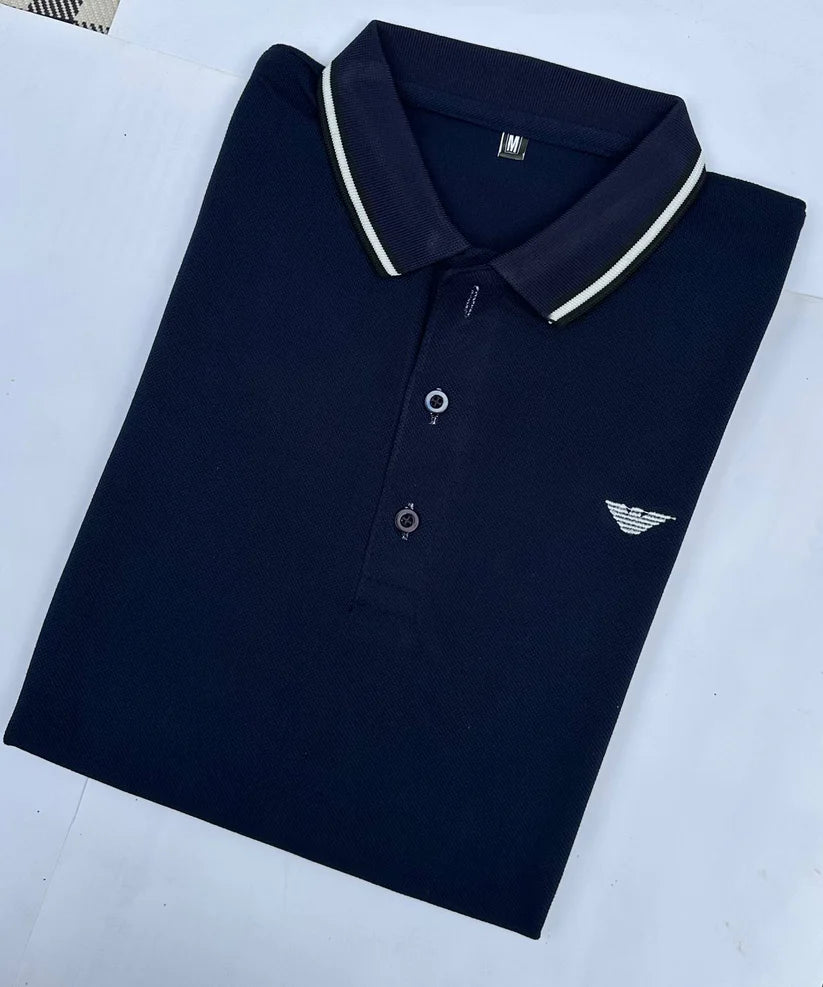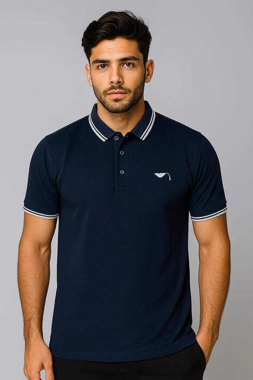 Men’s Navy Blue Polo Shirt – Elegant Contrast Collar Style