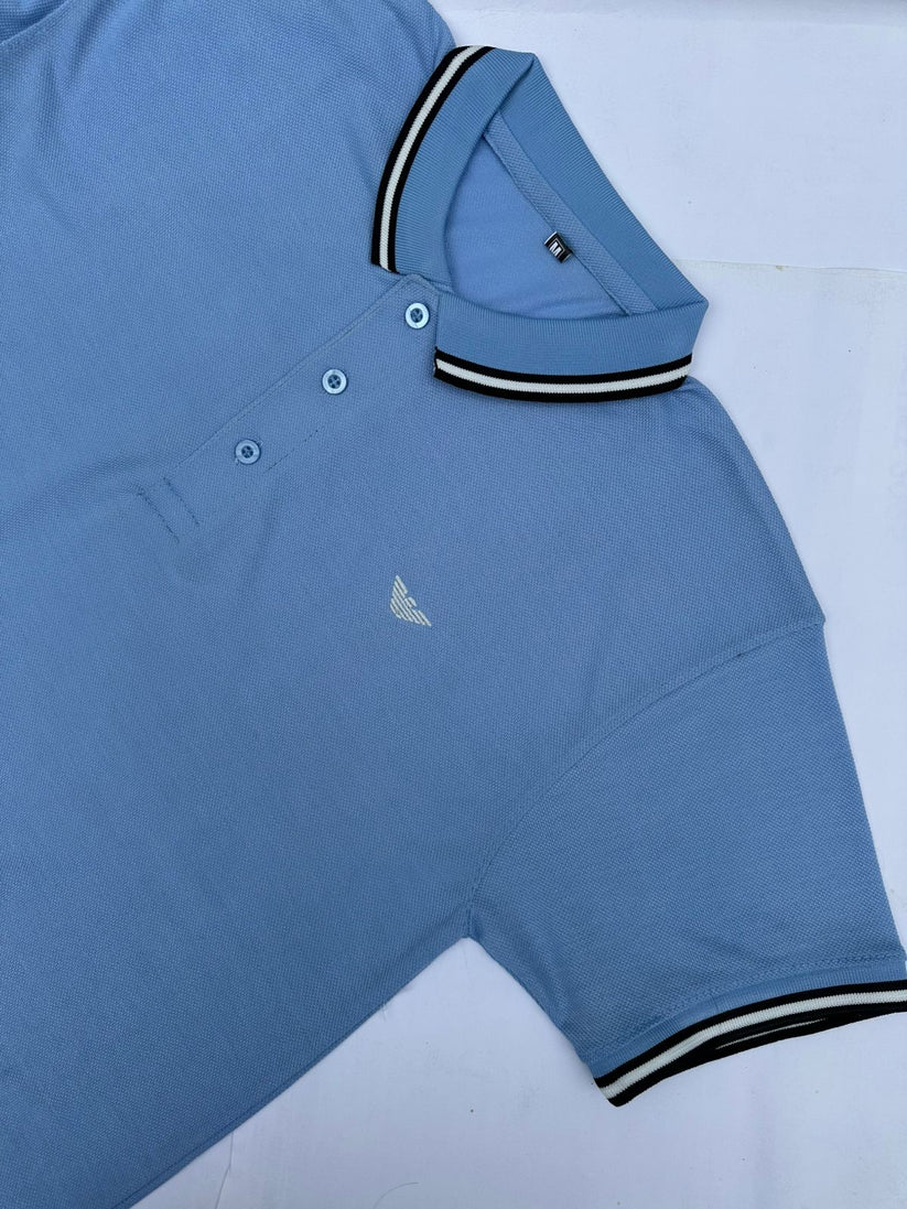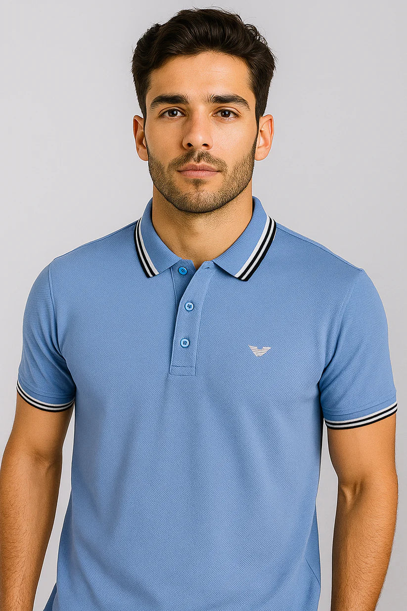 Men’s Sky Blue Polo Shirt – Cool & Stylish with Contrast Collar